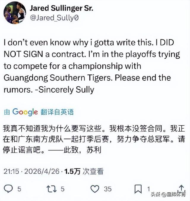 萨林杰表示,之前网上传播关于他在海外联赛签约和转会情况是假的,他没有签合同,他现在正在跟宏远一起打季后赛,努力争夺总冠军,请停止谣言。
